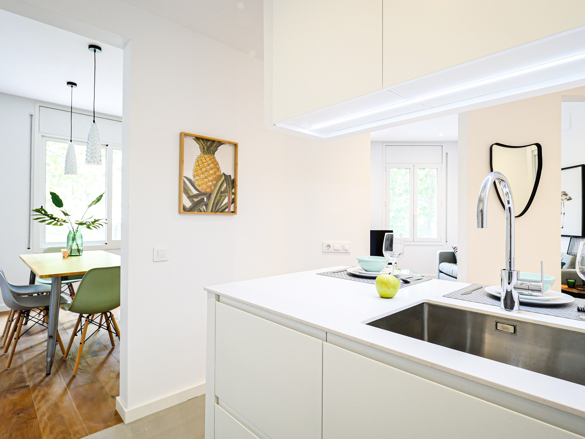 Fully decorated, combining modern elements with a gorgeous wood floor. Smart mixed with brand new designer kitchen, industrial and tropical details, wood, vintage mirrors, and unique pieces.